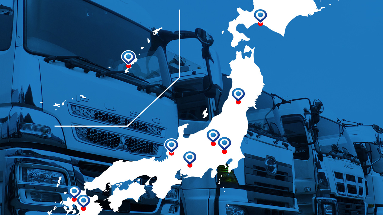 日本国内に9つの車輌展示場を保有しています。北は北海道から、南は沖縄までを網羅。ネットワークを活かした豊富な品揃えでお迎えいたします。