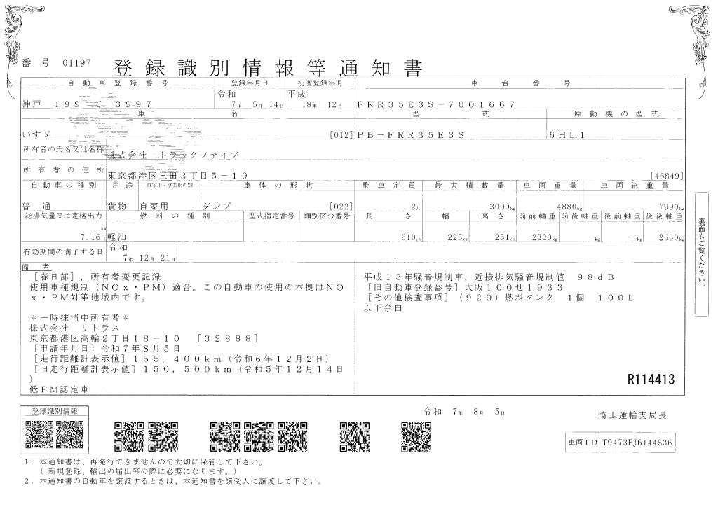 いすゞ | フォワード(中型)|PB-FRR35E3S|セーフティダンプ|平成18年12月|R114413 |中型(4トン)